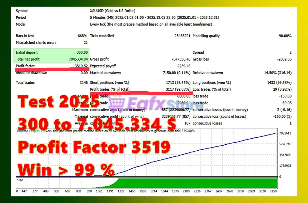 The Golden Mean EA backtest trading results achieved impressive profit performance for 12 months on the XAUUSD pair.