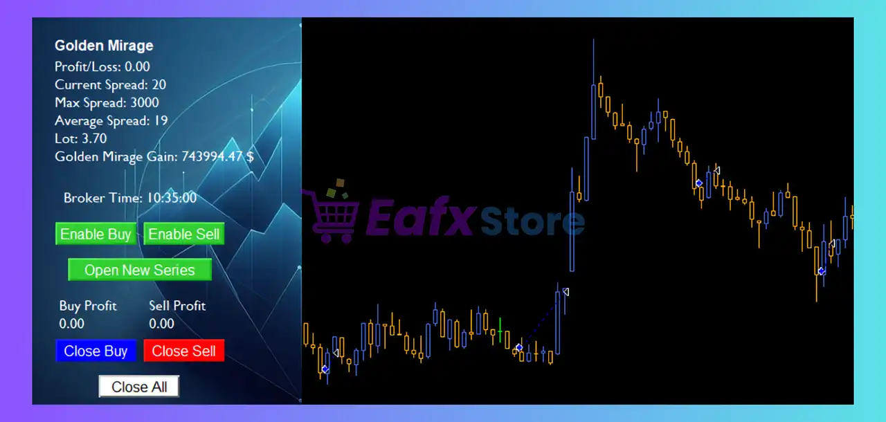 Golden Mirage MT4 is a gold trading Expert Advisor (EA) designed for XAUUSD (GOLD) on the M5 timeframe. It combines multiple technical indicators — RSI, Moving Average, ADX, and High/Low Levels — to identify precise trading opportunities. The EA is fully automated and pre-optimized for both live and backtest trading.