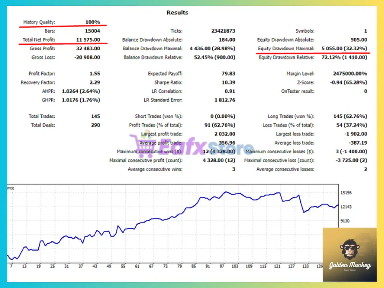 Golden Monkey MT5 operates fully automatically, managing trade entries, exits, and conditions without the need for manual intervention.
