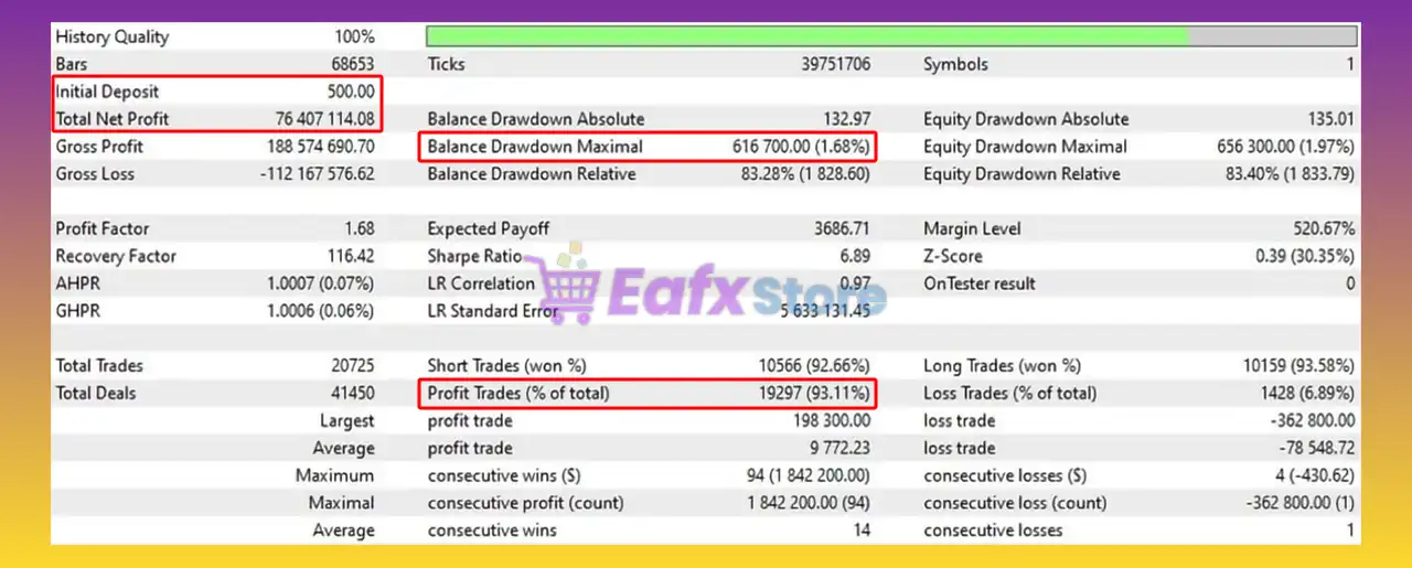 Golden Snow EA is recommended to start with a minimum deposit of $500 to ensure stable risk management and proper execution.