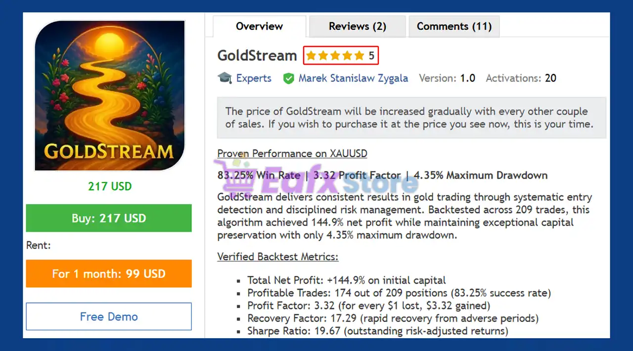 GoldStream EA shows significant potential in providing stable and reliable profits, becoming a reliable tool in the forex market. This advisor is highly appreciated by the community in many aspects and has won the trust of users.