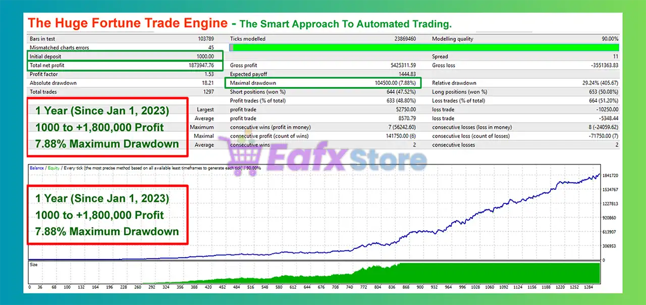 🧩 The Huge Fortune Trade Engine EA backtest trading results achieved impressive profit performance for 1 years.