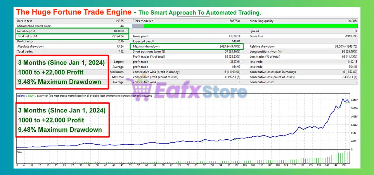 🧩 The Huge Fortune Trade Engine EA backtest trading results achieved impressive profit performance for 3 months.
