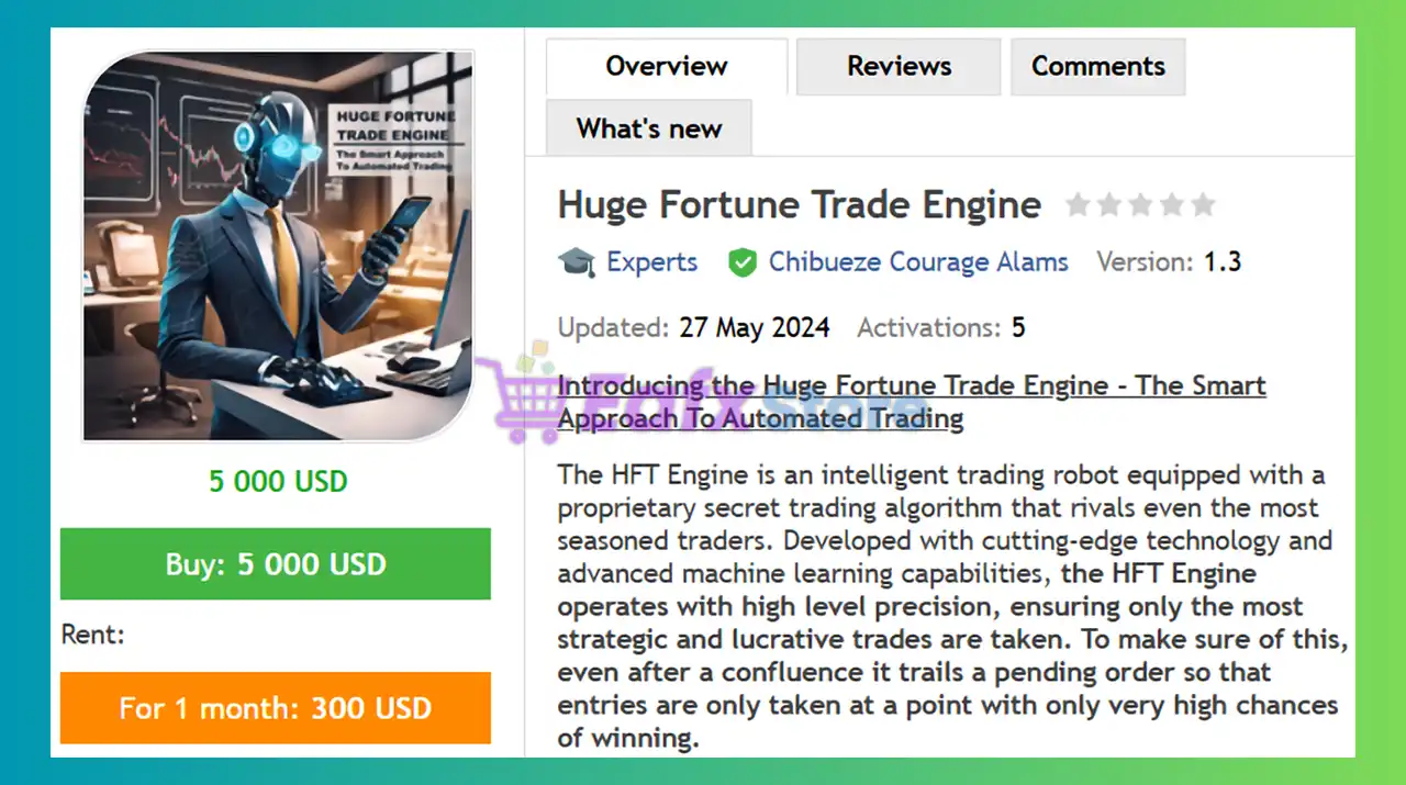 The Huge Fortune Trade Engine is an intelligent trading robot equipped with a proprietary secret trading algorithm. It is developed with cutting-edge technology and advanced machine learning capabilities to secure optimal trading outcomes. The bot operates with high-level precision and is suitable for any Prop challenge.