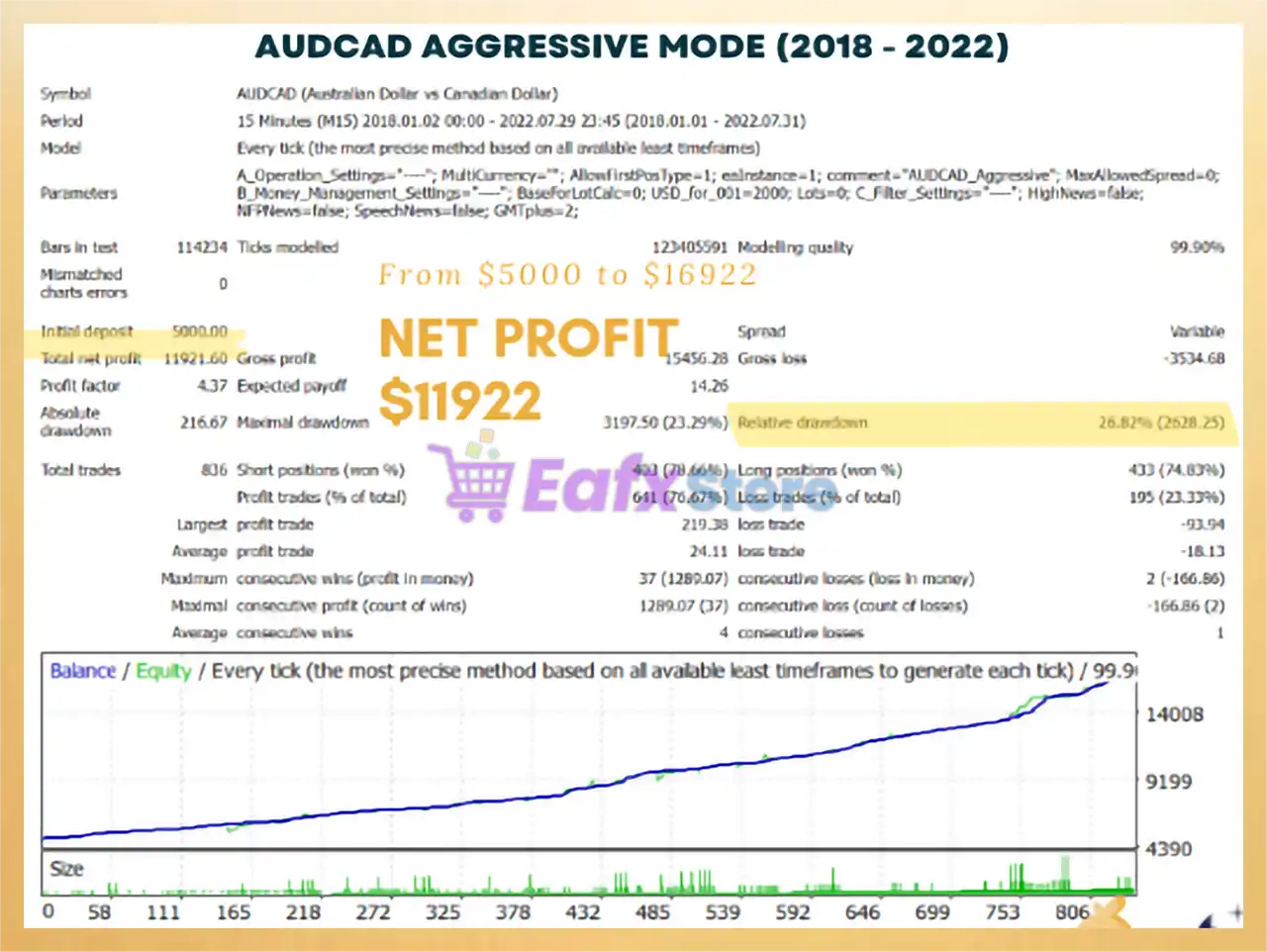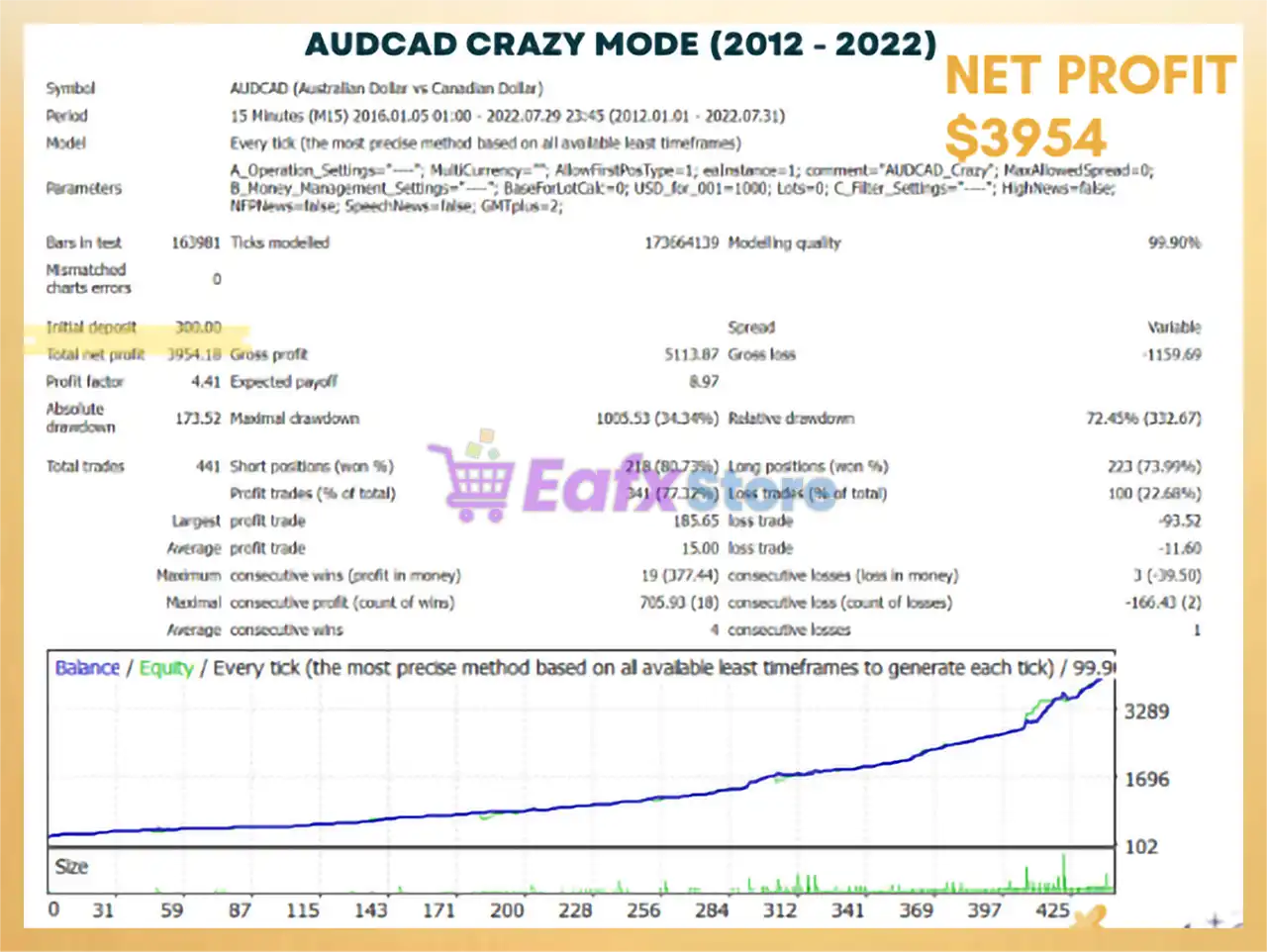 🔶 The Hundred Egg EA backtest trading results achieved impressive profit performance for 4 years on the AUDCAD pair.