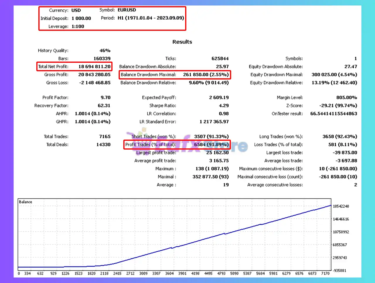 🔶 The Hypers Trex EA backtest trading results achieved impressive profit performance for 24 years on the EURCAD pair.