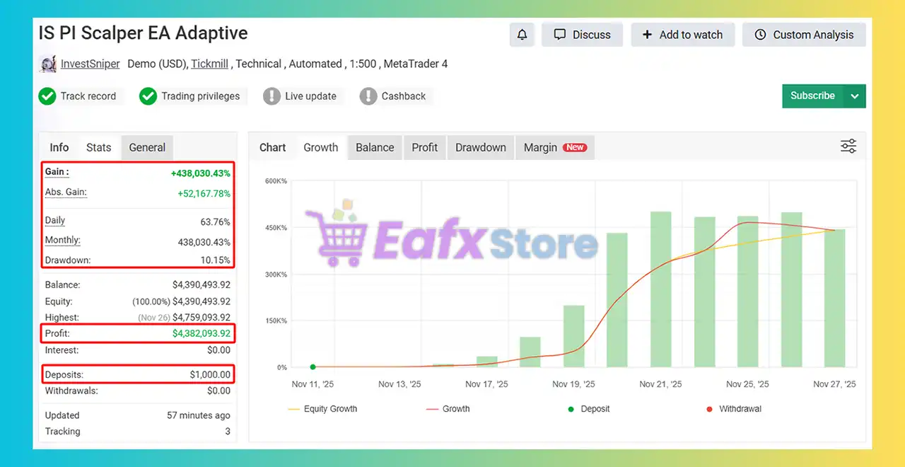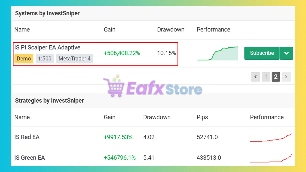 This product is compiled by InvestSniper. This author has more than +8 years of experience working on MyFxBook with many famous products such as IS PI Scalper EA, IS VIP One EA, Exclusive Scalping EA, IS SevenTrade EA, IS Smart Scalper EA, IS Orange EA and other advisors. Among them, IS PI Scalper EA is his best performing product.