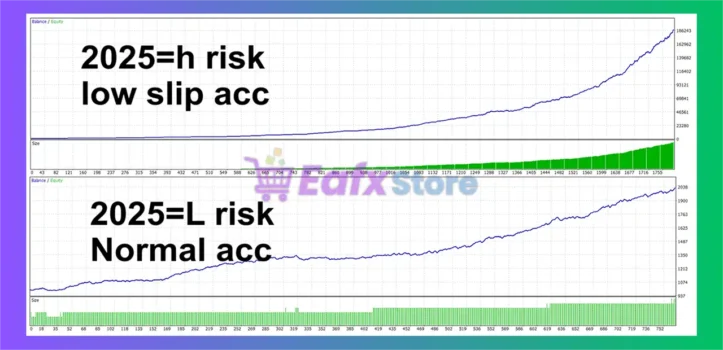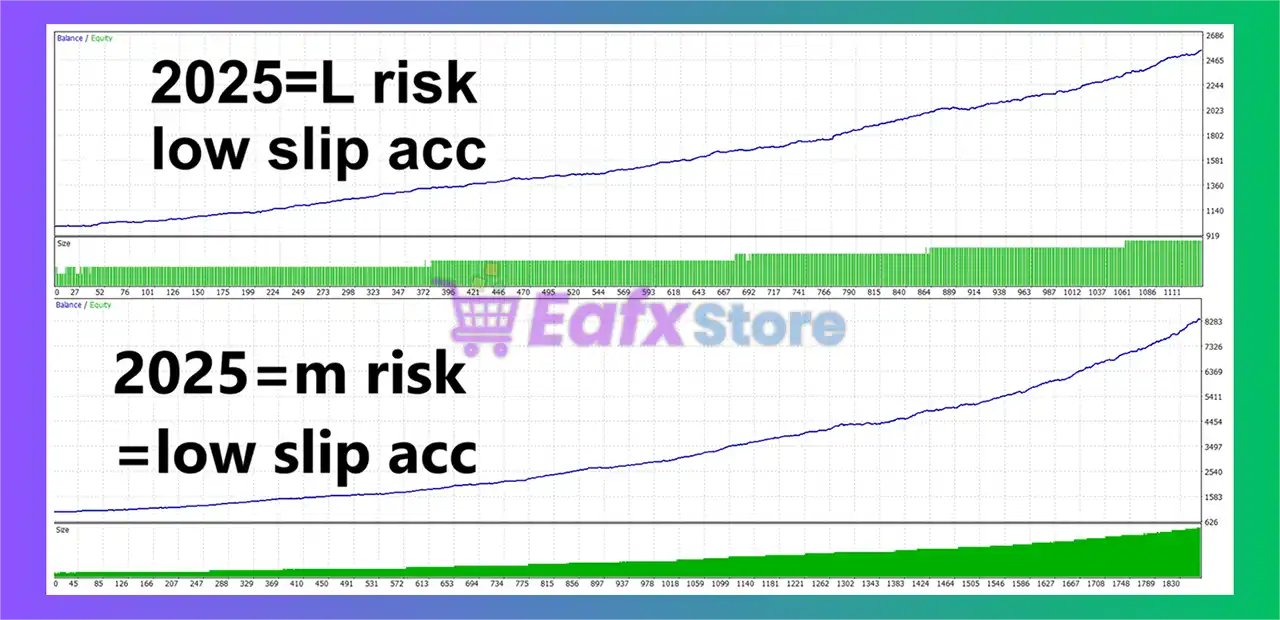 ✅ Jesko EA demonstrated strong and stable trading performance during the 2025 backtest, demonstrating impressive adaptability in both high-risk (low slippage) and low-risk (regular account) environments. The results reflect the algorithm’s accuracy in managing risk, controlling drawdown, and generating steady capital growth.