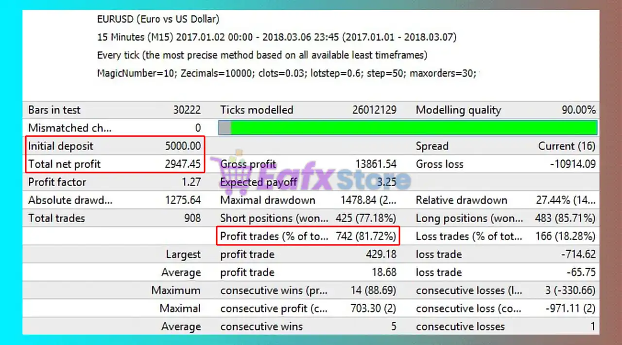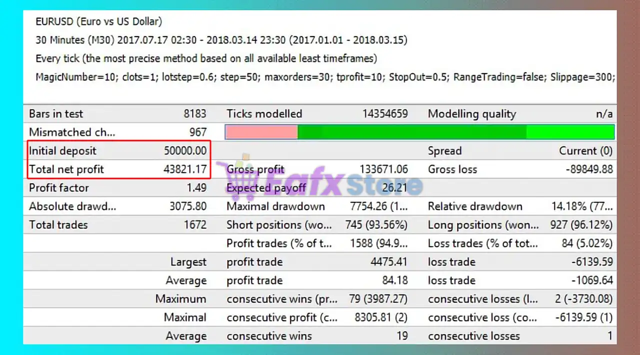 The MarketFollower EA has achieved impressive profit performance over many years of trading reversion tests with EURUSD. This EA demonstrates excellent ability to master the market and increase profits.