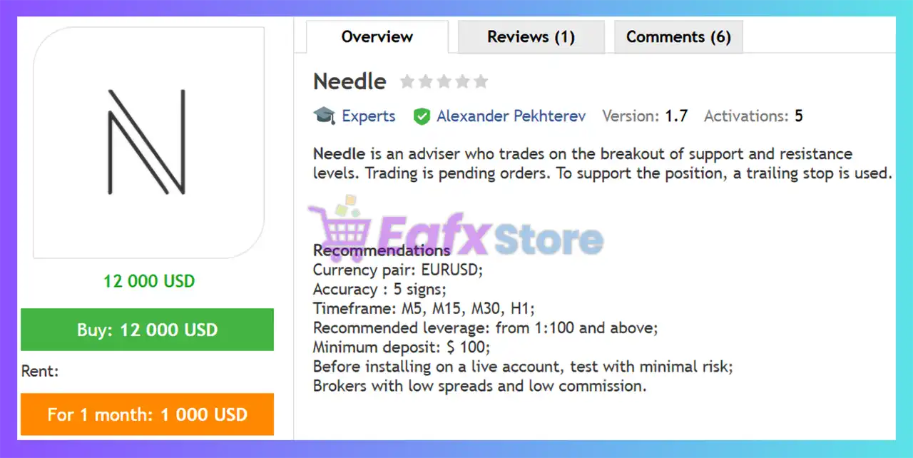 Needle EA MT4 requires a minimum deposit of $100, making it accessible while maintaining effective performance and risk control.