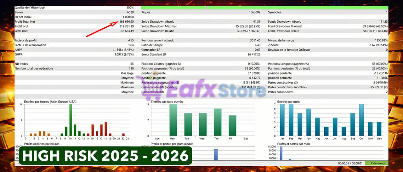 The results of the reverse test trades on NeuroBreak Twin Runner EA system achieved impressive profit performance over 1 years with the HIGH RISK strategy.