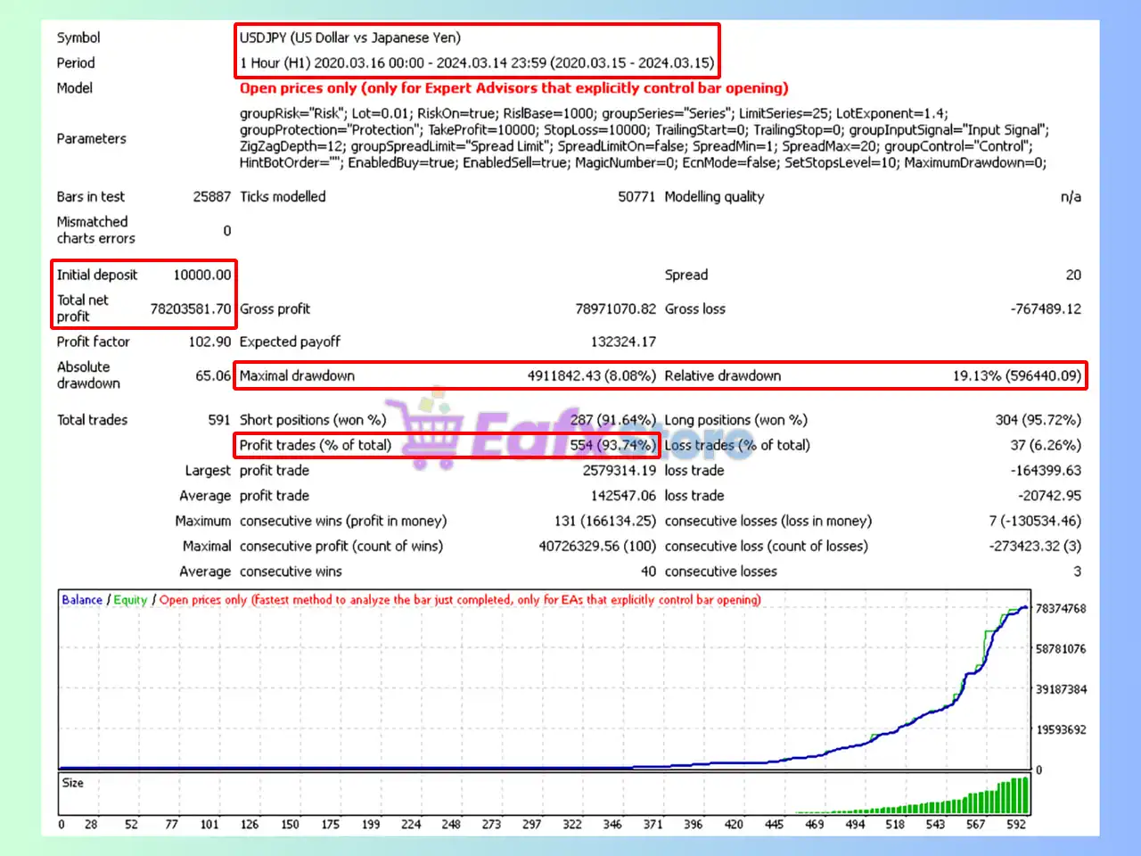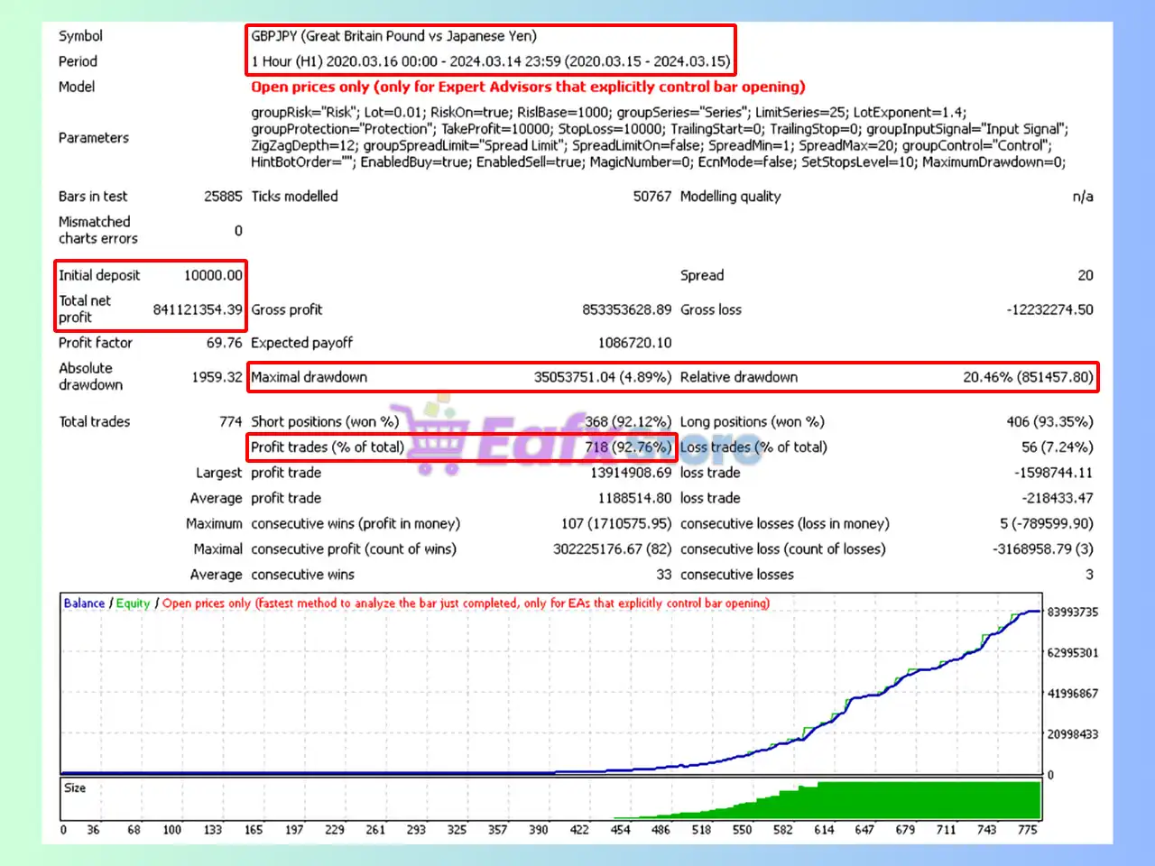 🔶 The Next Turbo EA backtest trading results achieved impressive profit performance for 4 years on the GBPJPY pair.