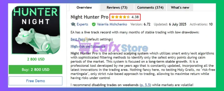 Night Hunter Pro MT4 focuses on calm sessions, pending-order precision, multi-pair control, and layered safety systems, offering a professional scalper built for longevity.
