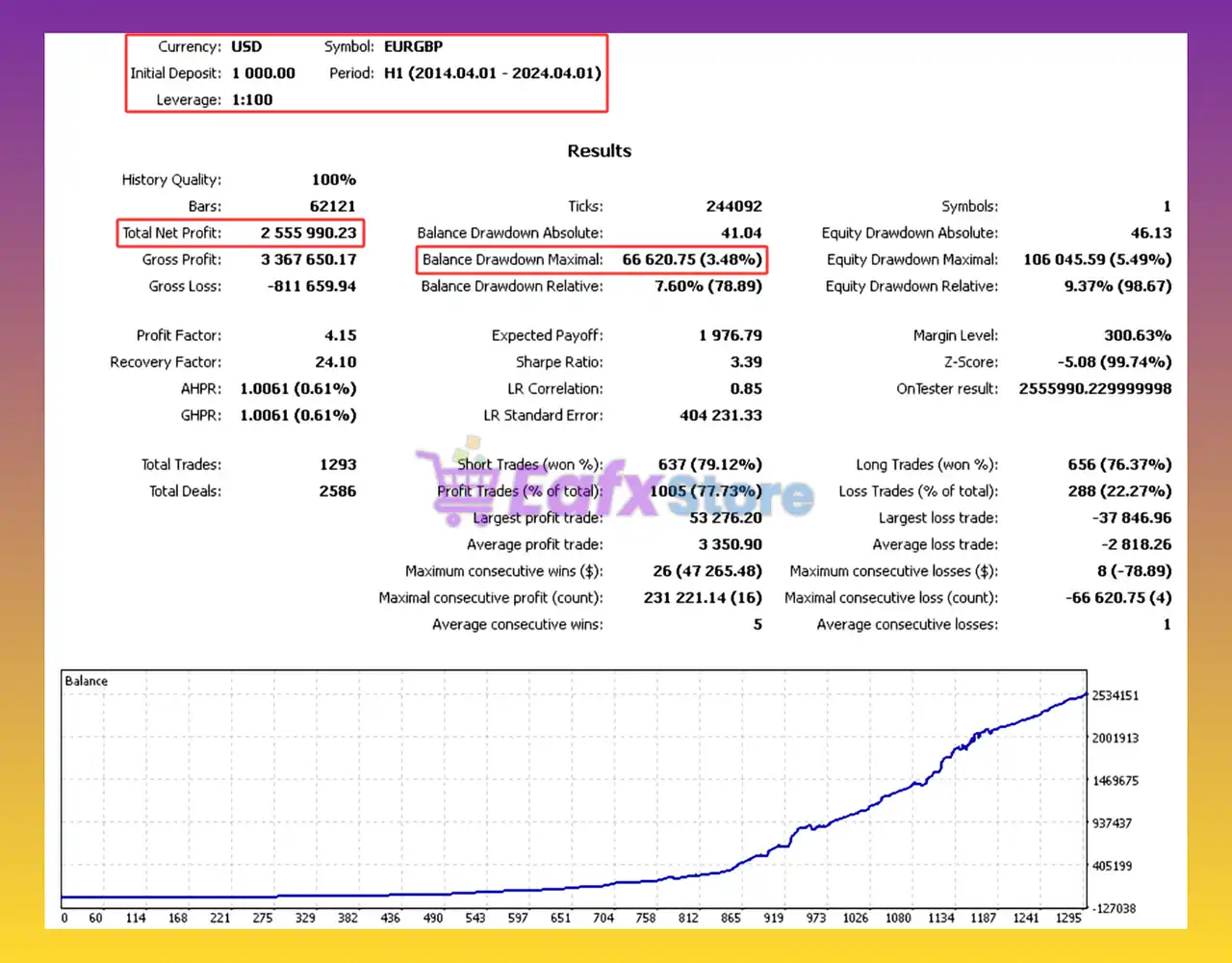 ✅ EURGBP: $2.56M profit, 77.73% win rate, 3.48% drawdown.