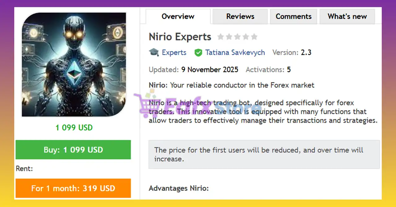Nirio Experts EA is an intelligent automated trading system built to analyze real-time market data, manage risk, and execute trades with precision. It combines trend detection, price-action analysis, and dynamic money management to support stable and consistent trading. With flexible customization, strong protection tools, and user-friendly control, Nirio delivers reliable performance for traders of all experience levels.