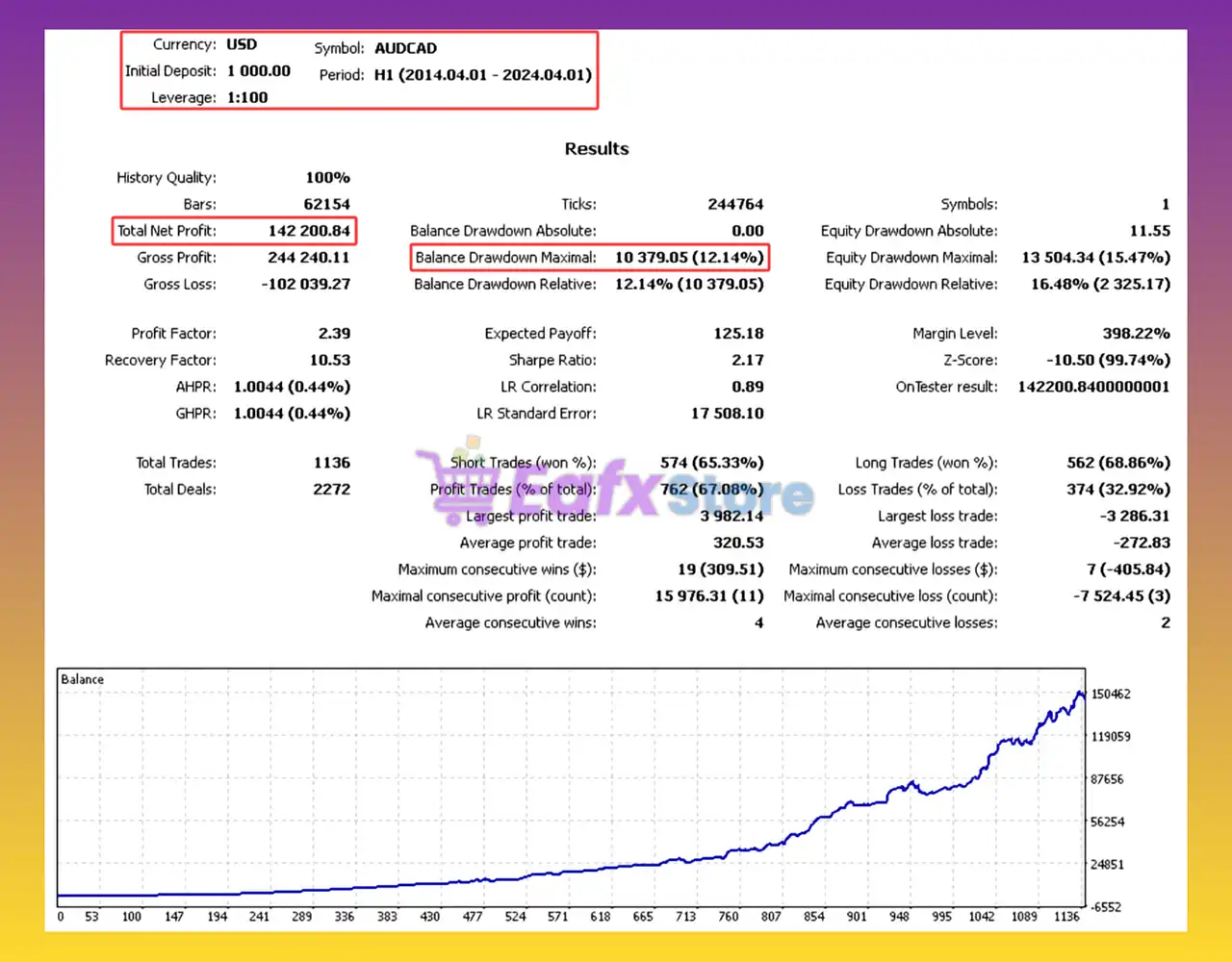 🧩 The Nirio Experts backtest trading results achieved impressive profit performance for 10 years on the AUDJPY pair.