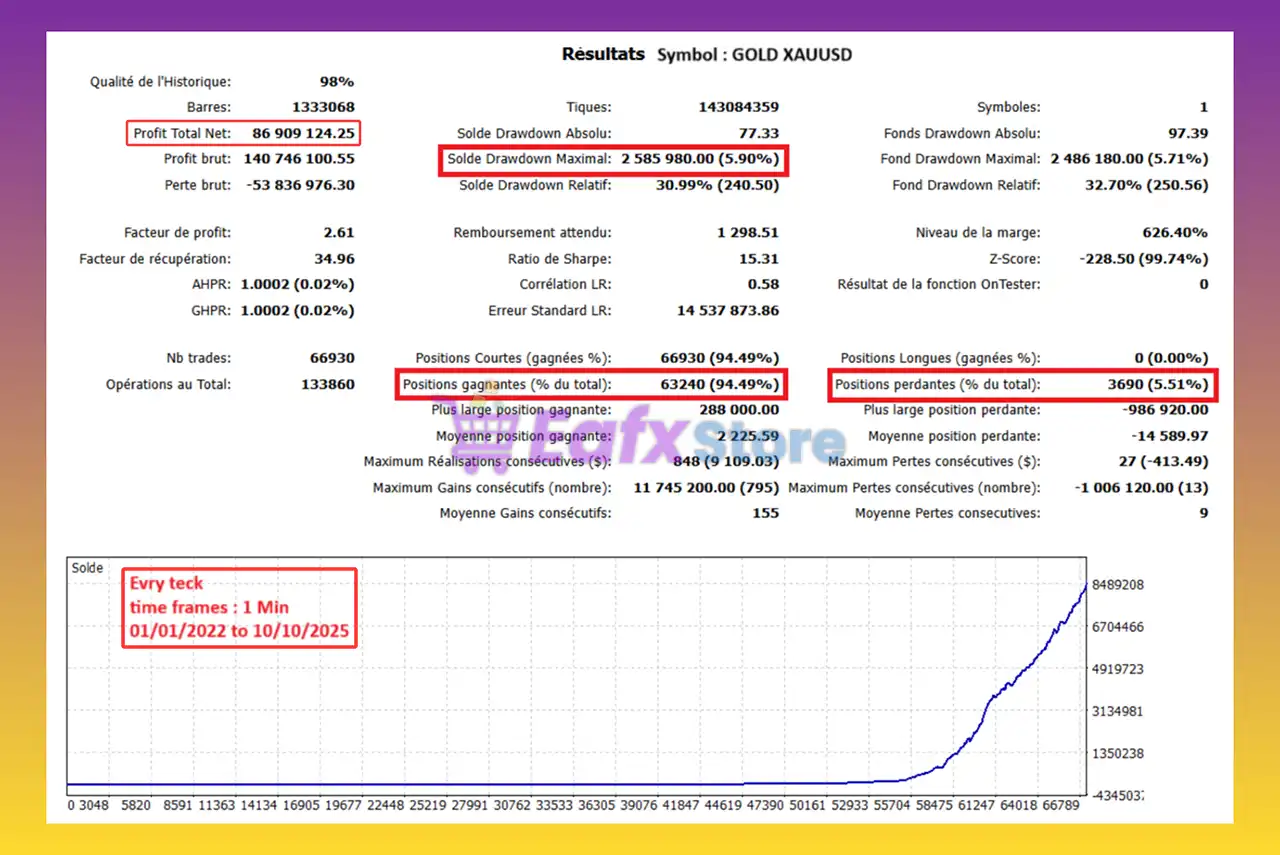 The EA is exclusively optimized for XAUUSD (Gold) and works best on M1 or M5 timeframes, ensuring precise execution and fast reaction to price changes.