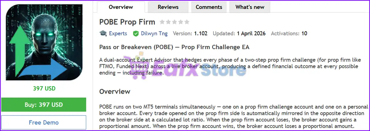 In short, POBE Prop Firm EA is a unique MT5 trading solution designed to help traders pass prop firm challenges using a dual-account hedging system. With defined outcome modeling, advanced risk control, and synchronized trade execution, it minimizes uncertainty and ensures structured performance. It is an ideal choice for traders seeking a strategic and controlled approach to prop firm success.