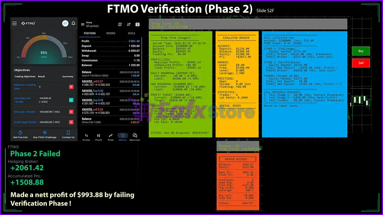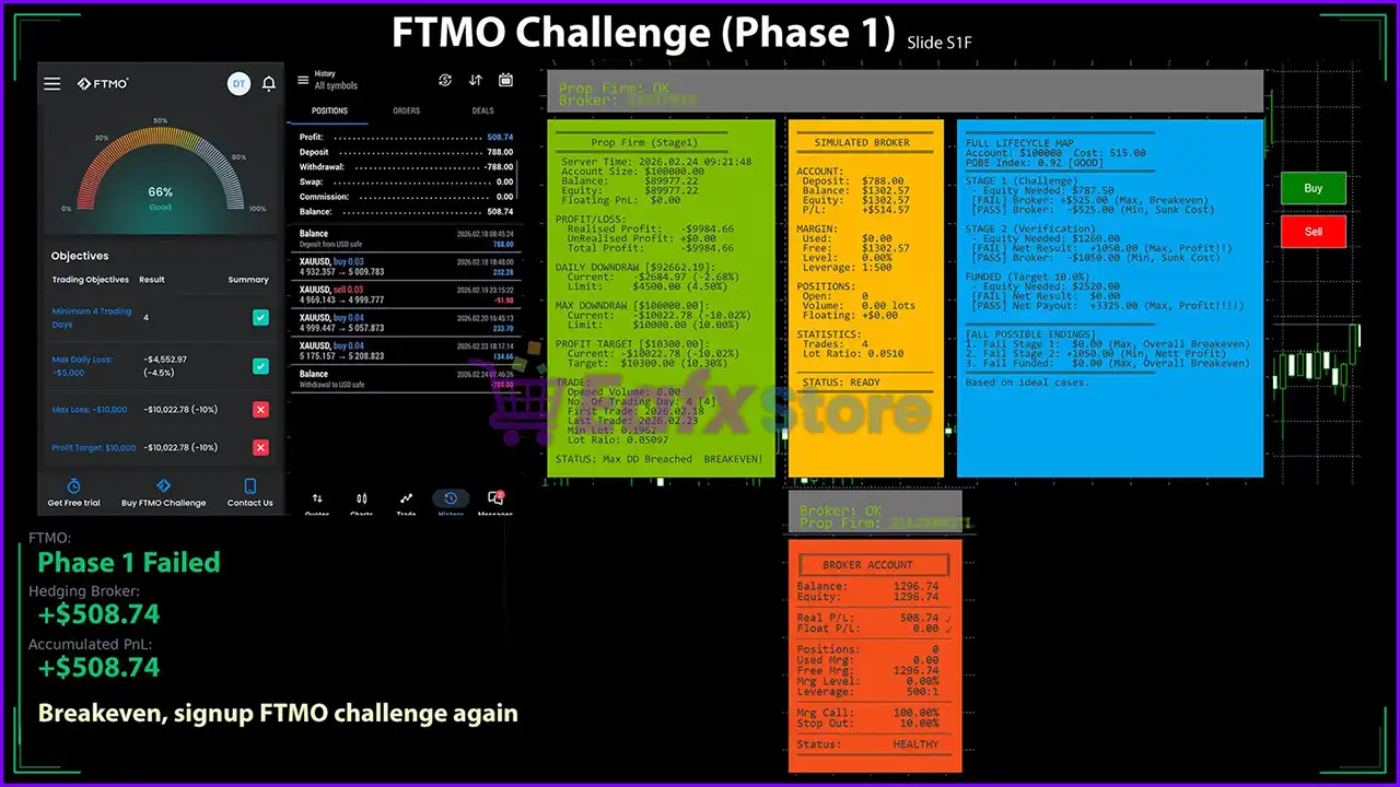 🔹 Dual-Account Hedging System: Mirrors trades between prop and broker accounts to balance profit and loss.
