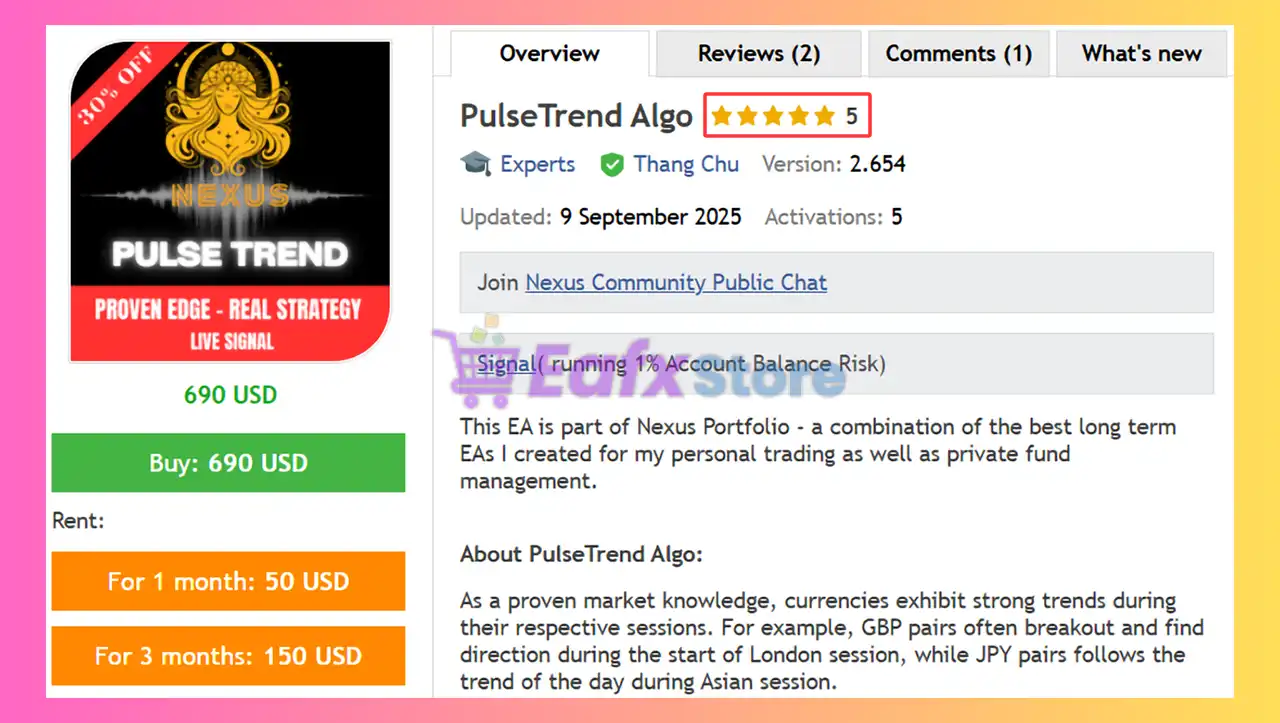 PulseTrend Algo EA MT5 (Latest version) – GroupBuy