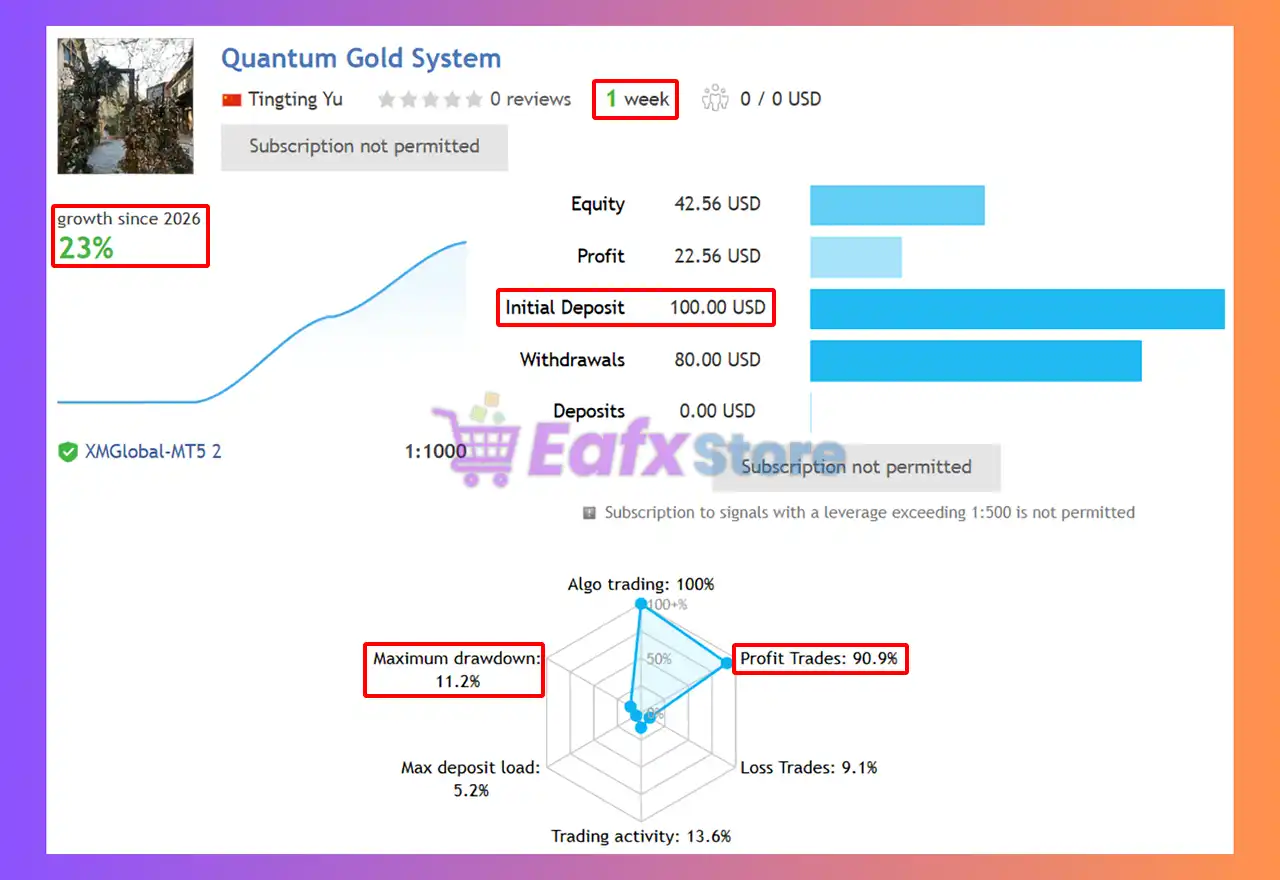 The Quantum Candlestick Collider EA achieved impressive profit performance when trading with XAUUSD (Gold). Trading results on real account for 1 consecutive weeks of trading.