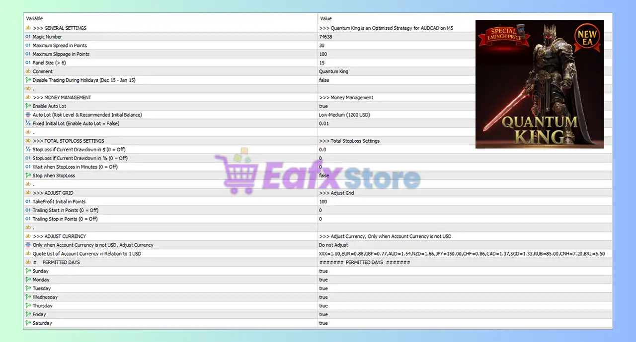 ✅ Yes. Quantum King EA is built for all trading levels, featuring a simple setup and fully automated operation. Beginners can start with the recommended default settings, while advanced users can fine-tune parameters for personal optimization.