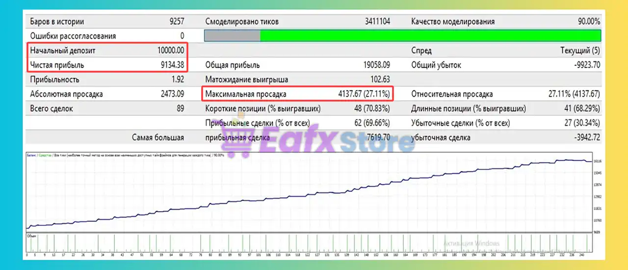 A 12-month backtest on XAUUSD (H1) with a $10,000 deposit showed: