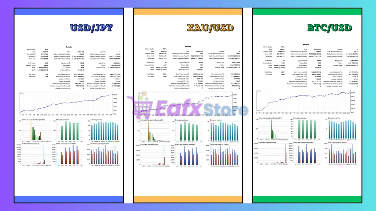 The EA is optimized for XAUUSD (Gold), USDJPY, and BTCUSD, primarily on the M1 (1-minute) chart, capturing short-term volatility spikes and breakout opportunities.