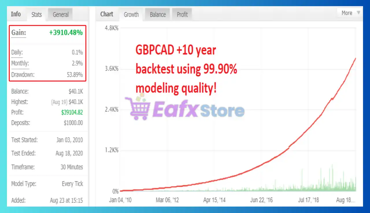 🔶 The Ranger EA has been verified by MyFxBook in the long term and has achieved impressive returns. The advisor shows good GBPCAD trading potential and high profit rate.