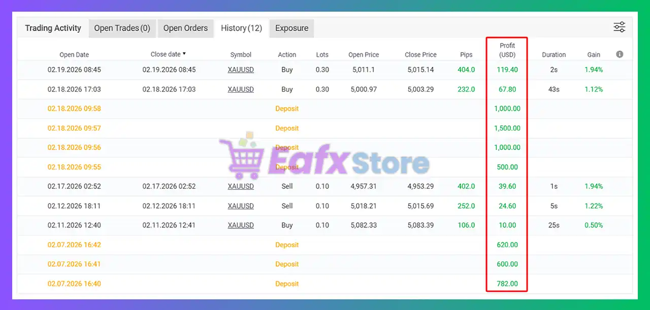 Robofxea Pro EA MT5 requires a minimum deposit of $100, preferably on a cent account, to ensure stable and controlled trading conditions.