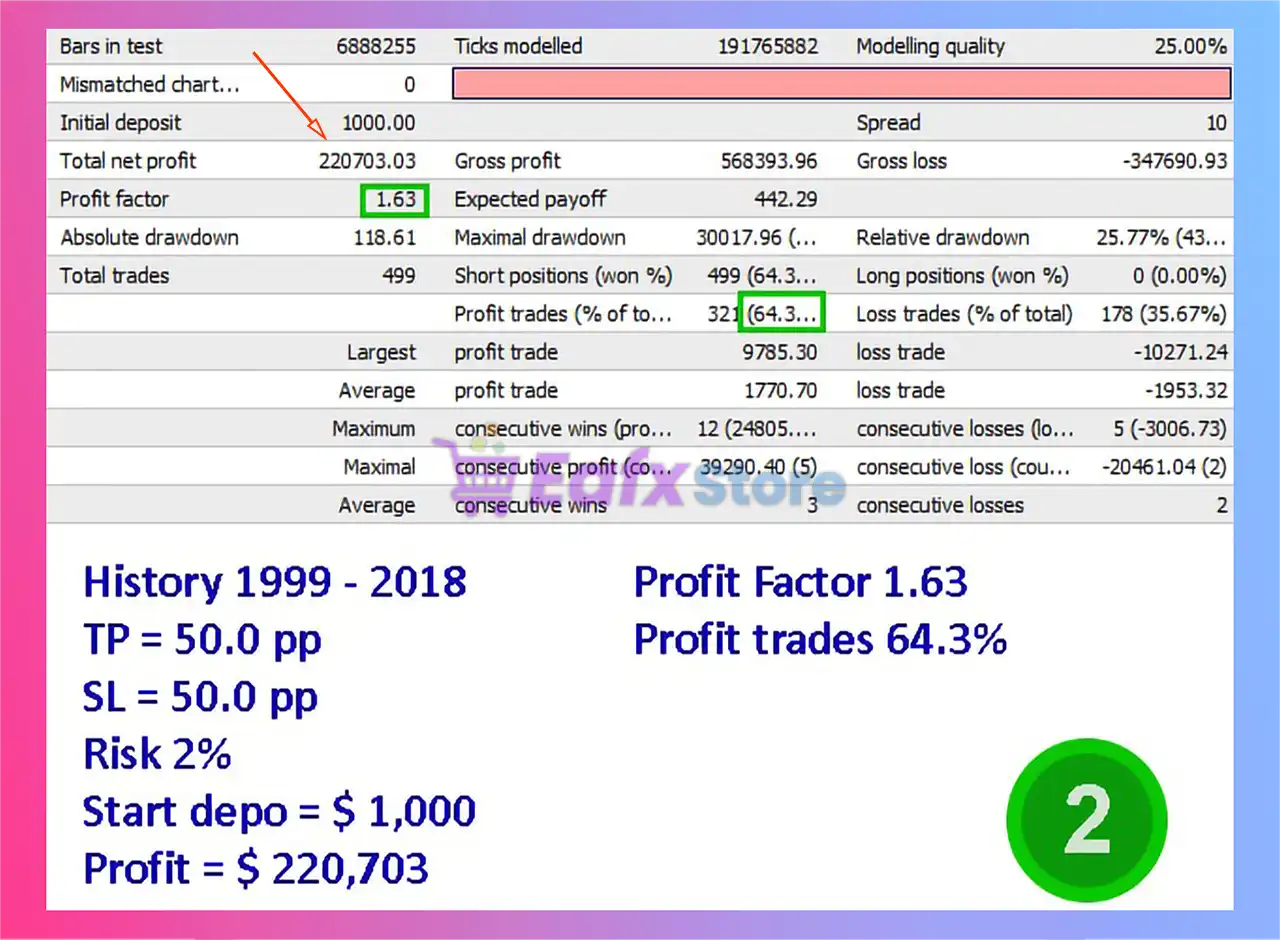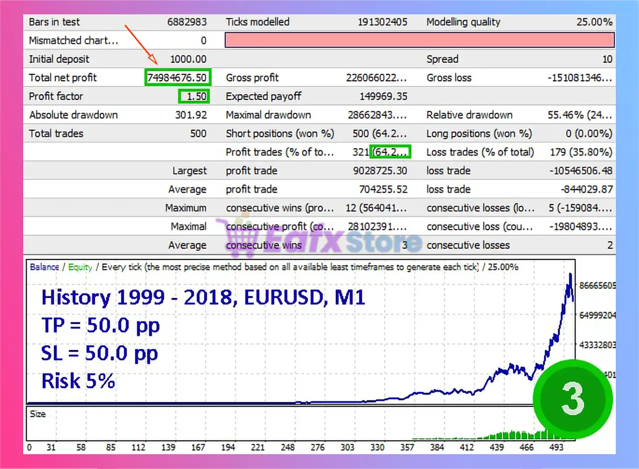 The RSI Mashka EA backtest trading results achieved impressive profit performance for 19 years on the EURUSD pair. Profitability performance with a 2% Risk strategy: