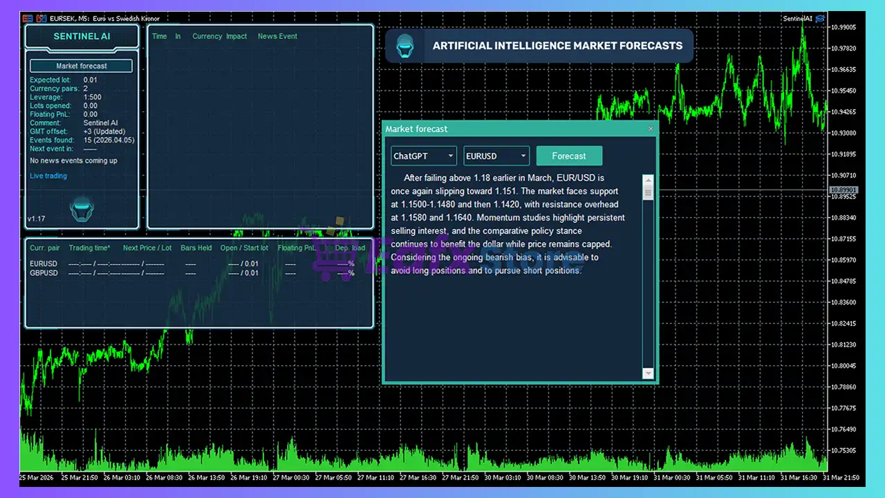 SentinelAI MT5 focuses on major pairs like EURUSD and GBPUSD, allowing traders to benefit from liquidity and stable market conditions.