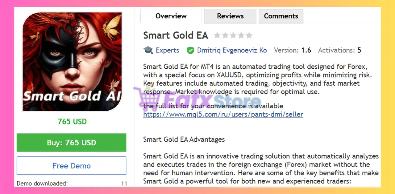 This product is compiled by Dmitriq Evgenoeviz Ko. This author has more than +4 years of experience working on MQL5 with many famous products such as Smart Gold EA, Black Gold MT4, Gold Angel MT4Golden Harmony MT4Pharaoh Gold MT4Apex Gold MT4 and other advisors. Among them, Smart Gold EA is his best performing product.