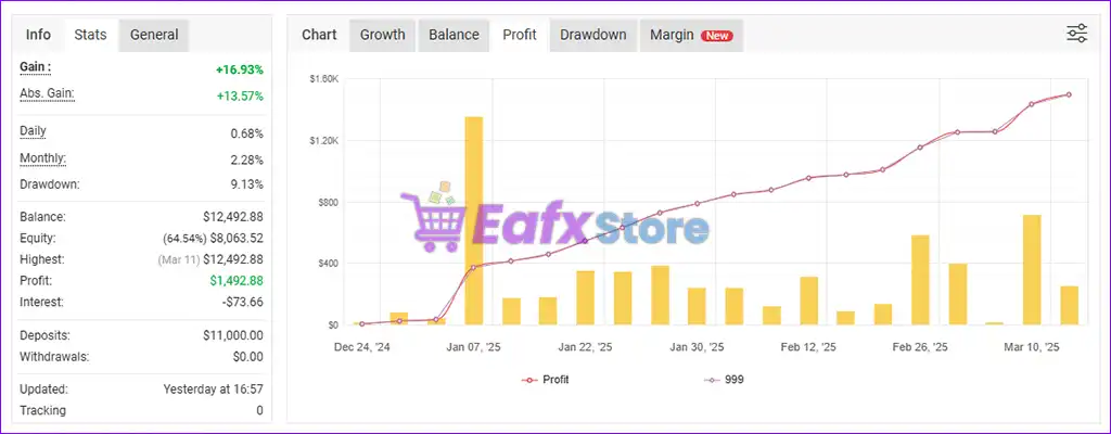 🔹Konrad Mieszkowski (2025.01.11): “I’ve been using Solution EA for a couple of weeks, and the initial results are very promising. My account shows a steady profit growth of over 15% with a very low drawdown of just 0.45%, which is impressive for an EA that operates on a progressive compound interest model.”