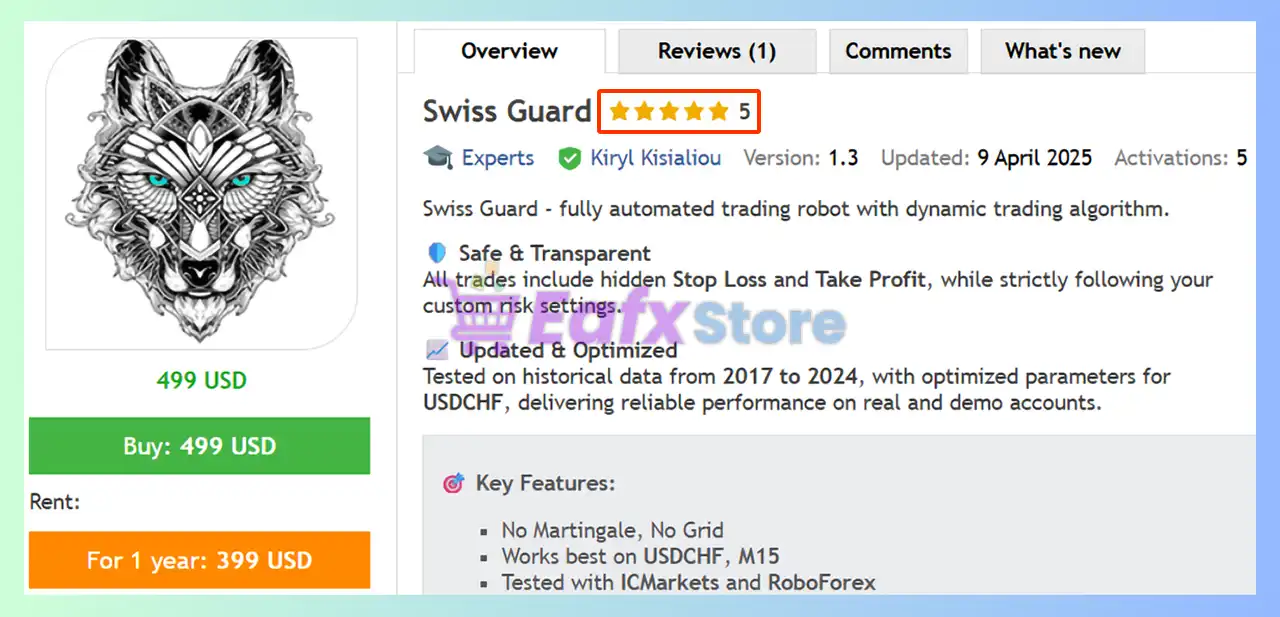 This product is compiled by Kiryl Kisialiou. This author has more than +4 years of experience working on MQL5 with many famous products such as Swiss Guard EA MT5, Swiss Guard EA MT4 and other advisors. Among them, Swiss Guard EA is his best performing products.