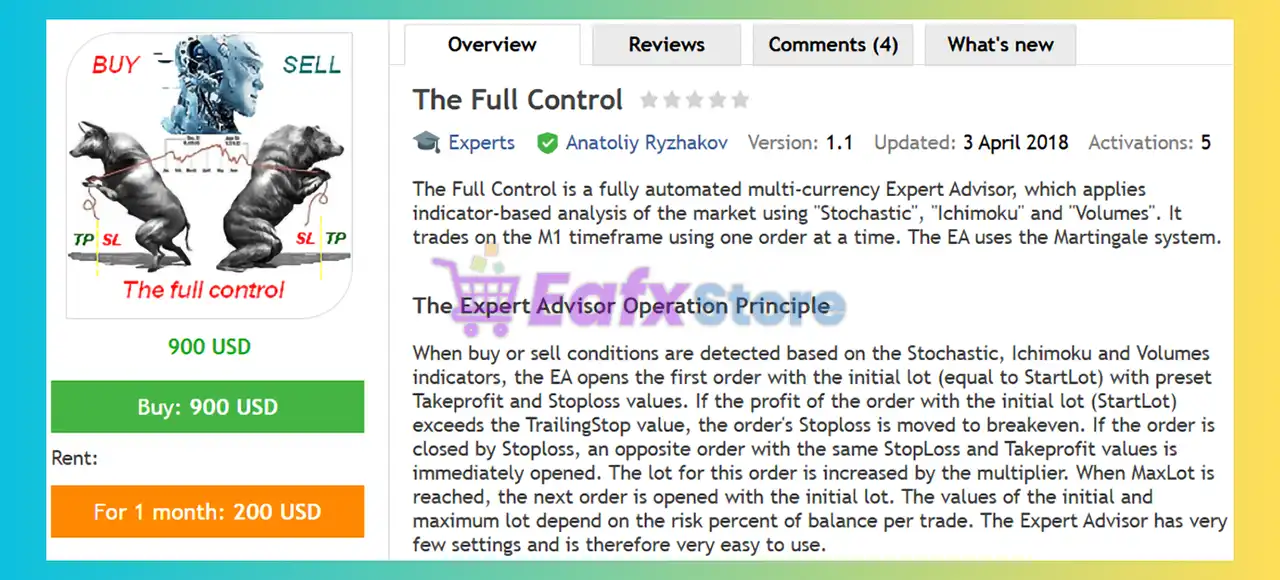 In short, The Full Control EA stands out as a powerful multi-currency trading EA for MT4, combining indicator-based precision with structured risk management. Its equal SL and TP framework, percentage-based lot sizing, and controlled Martingale scaling enhance stability in volatile conditions. Ideal for EURUSD and GBPUSD traders seeking automated M1 strategy execution with clear rules.