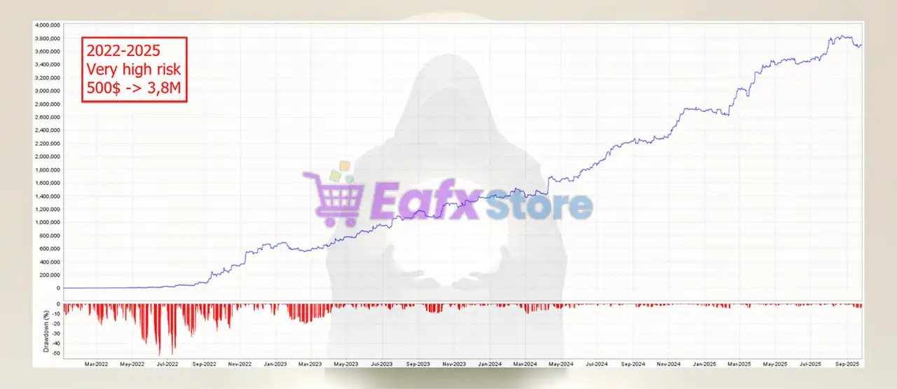Backtests from 2020–2025 showed profits up to $3.6M from $10,000 and $460K from $50,000 with controlled drawdown.