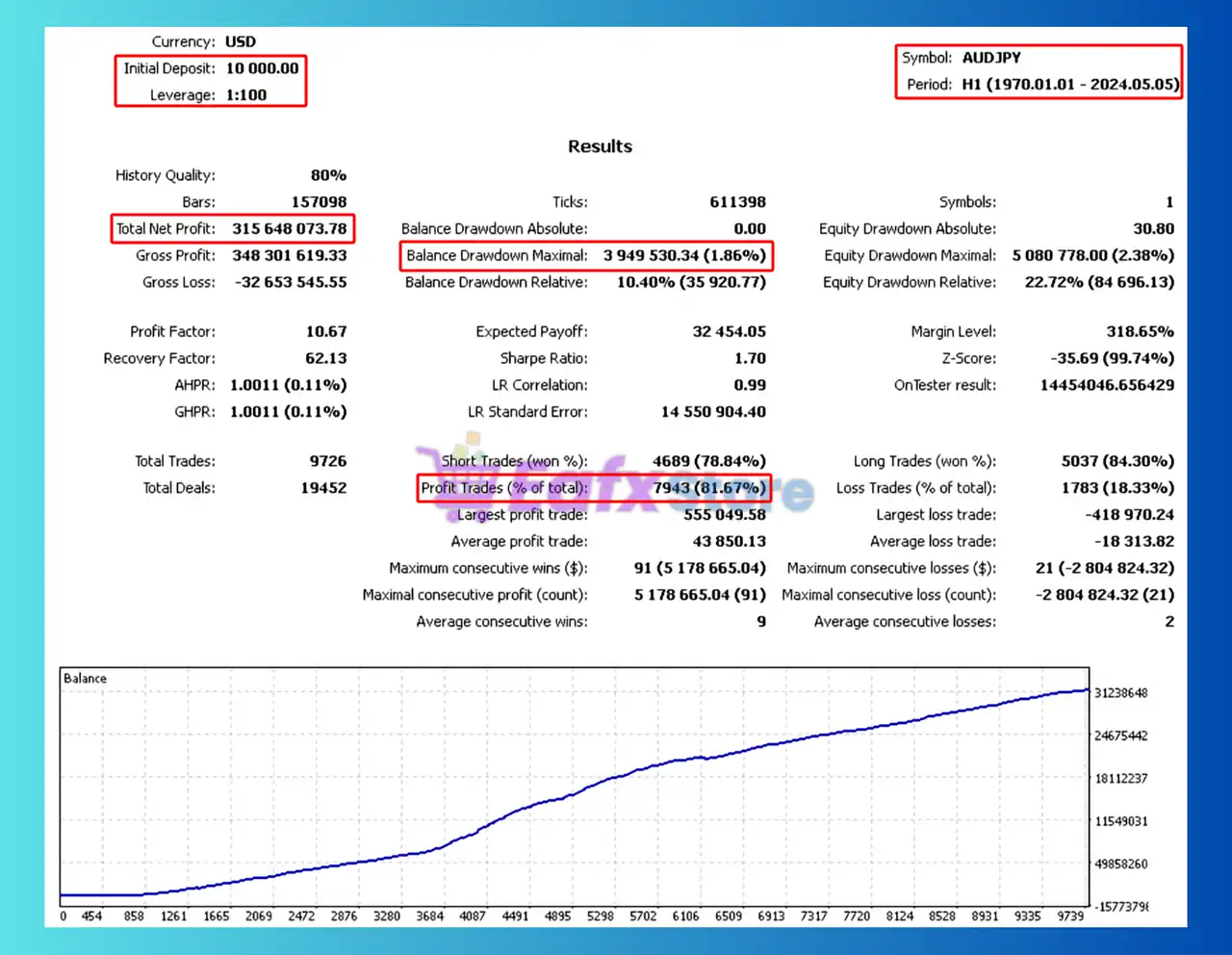 🧩 The Trade Vantage v4 backtest trading results achieved impressive profit performance for 54 years on the AUDJPY pair.