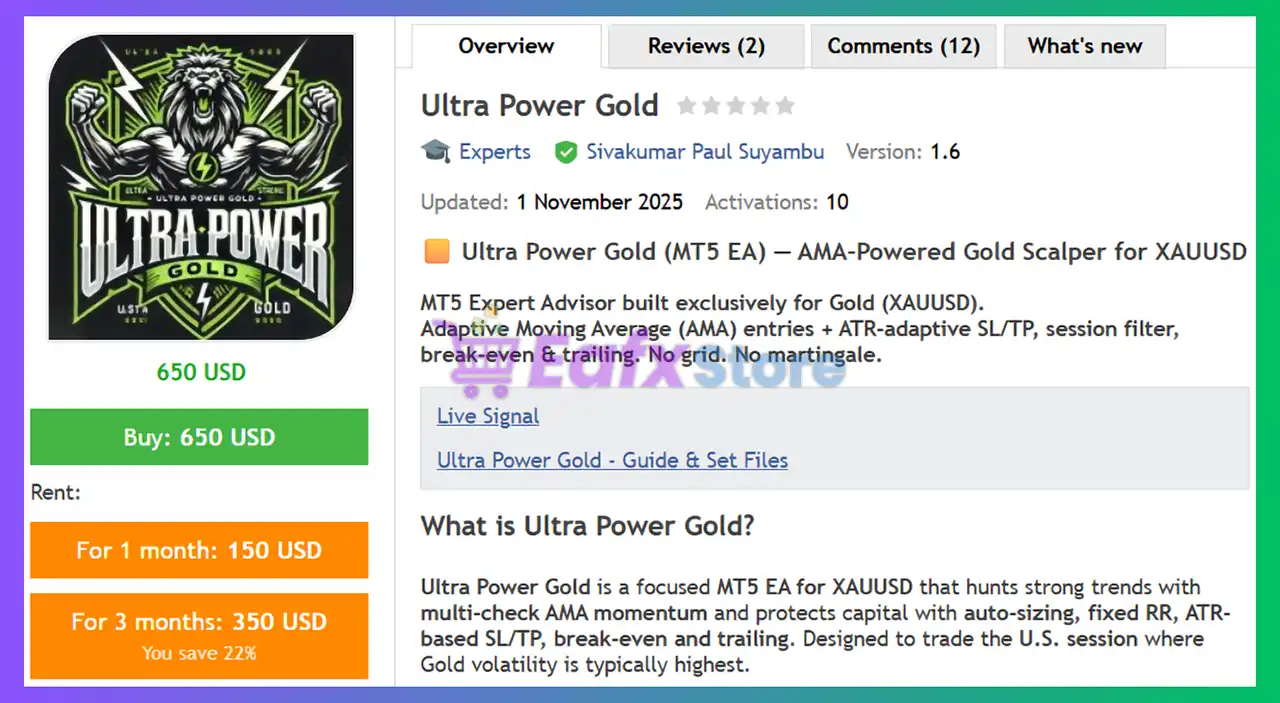 Ultra Power Gold EA MT5 + Sets (Latest version) – Group Buy