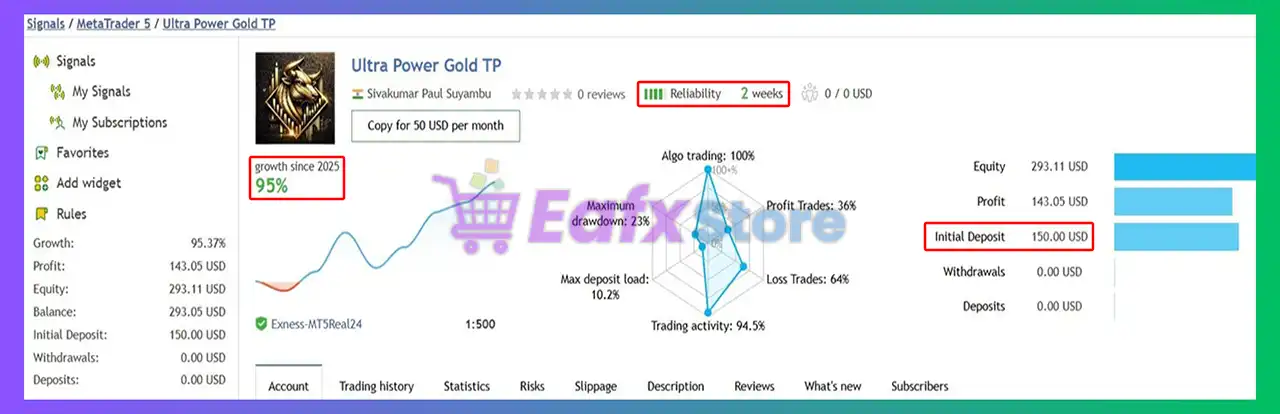 Ultra Power Gold EA MT5 Signal Results