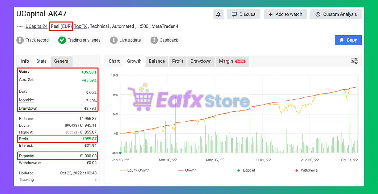 The VEGA AK47 EA has demonstrated extraordinary trading performance on a verified Myfxbook account. Below is a breakdown of the key metrics and what they reveal about the Expert Advisor (EA):