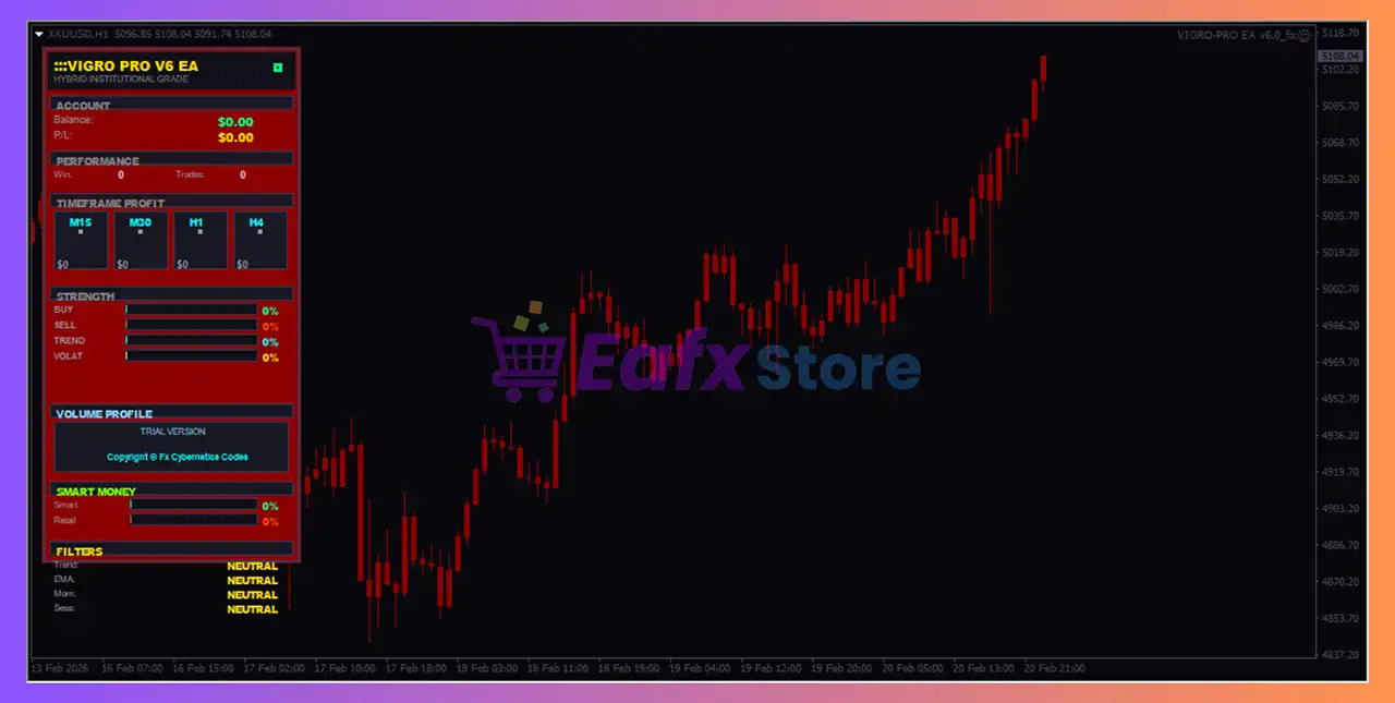 VIGRO PRO EA operates on M15, M30, H1, and H4 charts. This multi-timeframe approach helps capture both intraday and swing trading opportunities with stronger confirmation.
