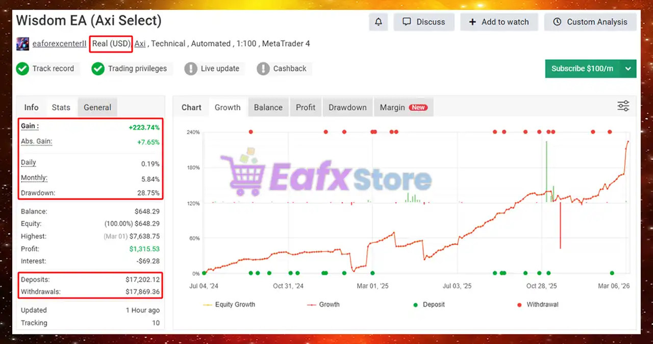 This product is compiled by Eaforexcen. This author has more than +5 years of experience working on MyFxBook with many famous products such as Wisdom EA MT4, Japanese Trend EA MT5, Divergen Pro EA MT4, Stoch Trend EA MT4, Twin Capital EA MT4 and other advisors. Among them, Wisdom EA is his best performing products.