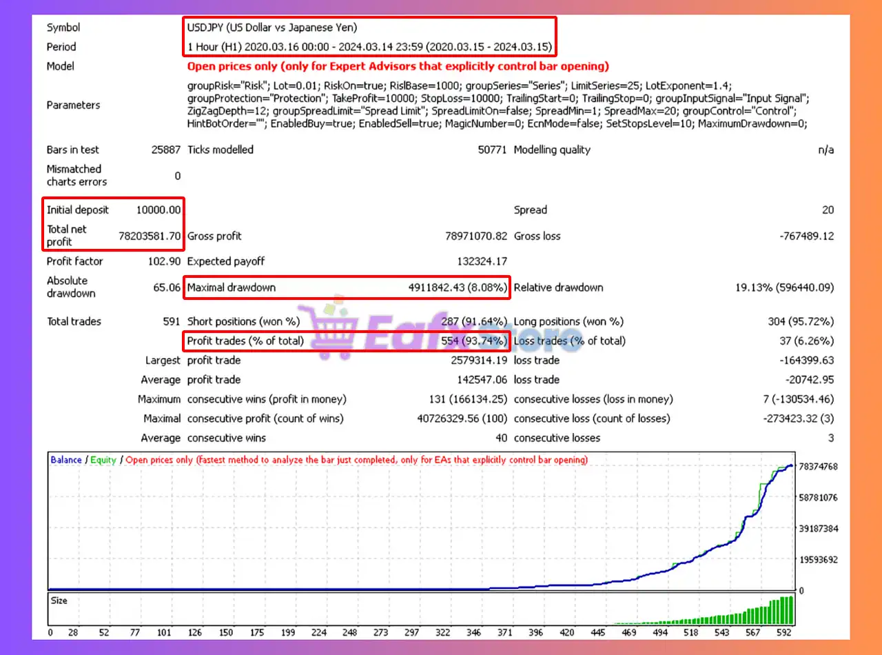 🔶 The Work Stations EA backtest trading results achieved impressive profit performance for 4 years on the USDJPY pair.