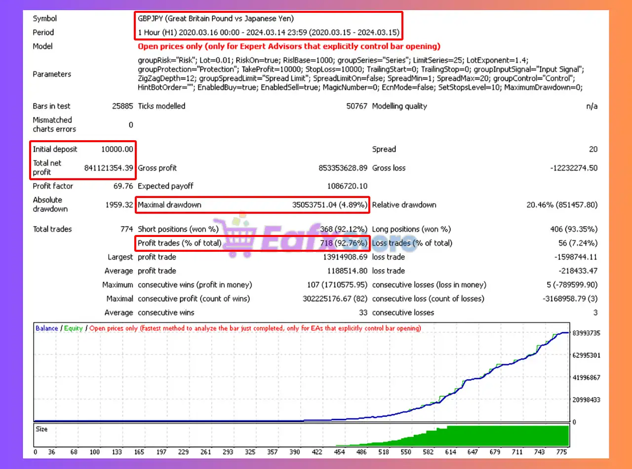 🔶 The Work Stations EA backtest trading results achieved impressive profit performance for 4 years on the GBPJPY pair.
