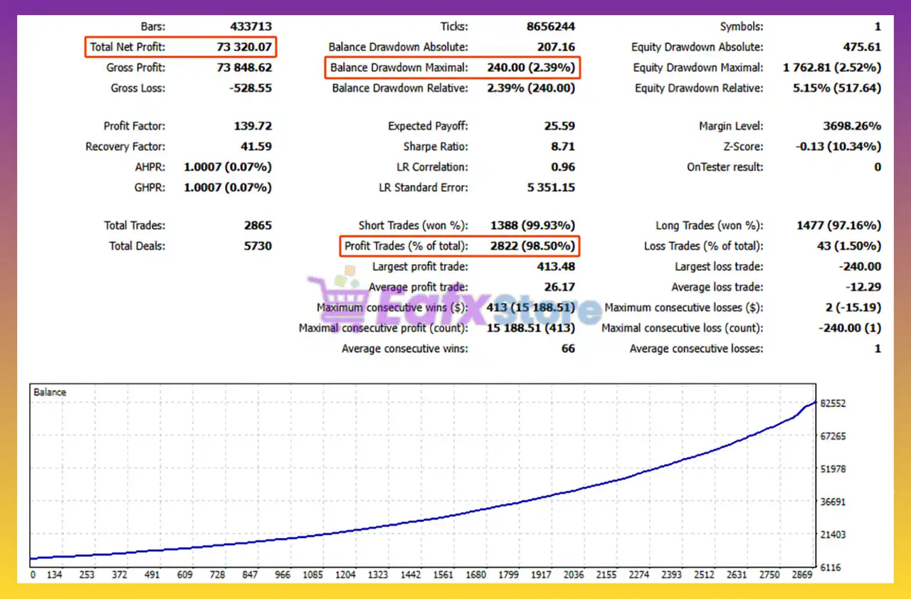 🔶 The Xauusd Breeze EA backtest trading results achieved impressive profit performance for 6 months on the XAUUSD pair.
