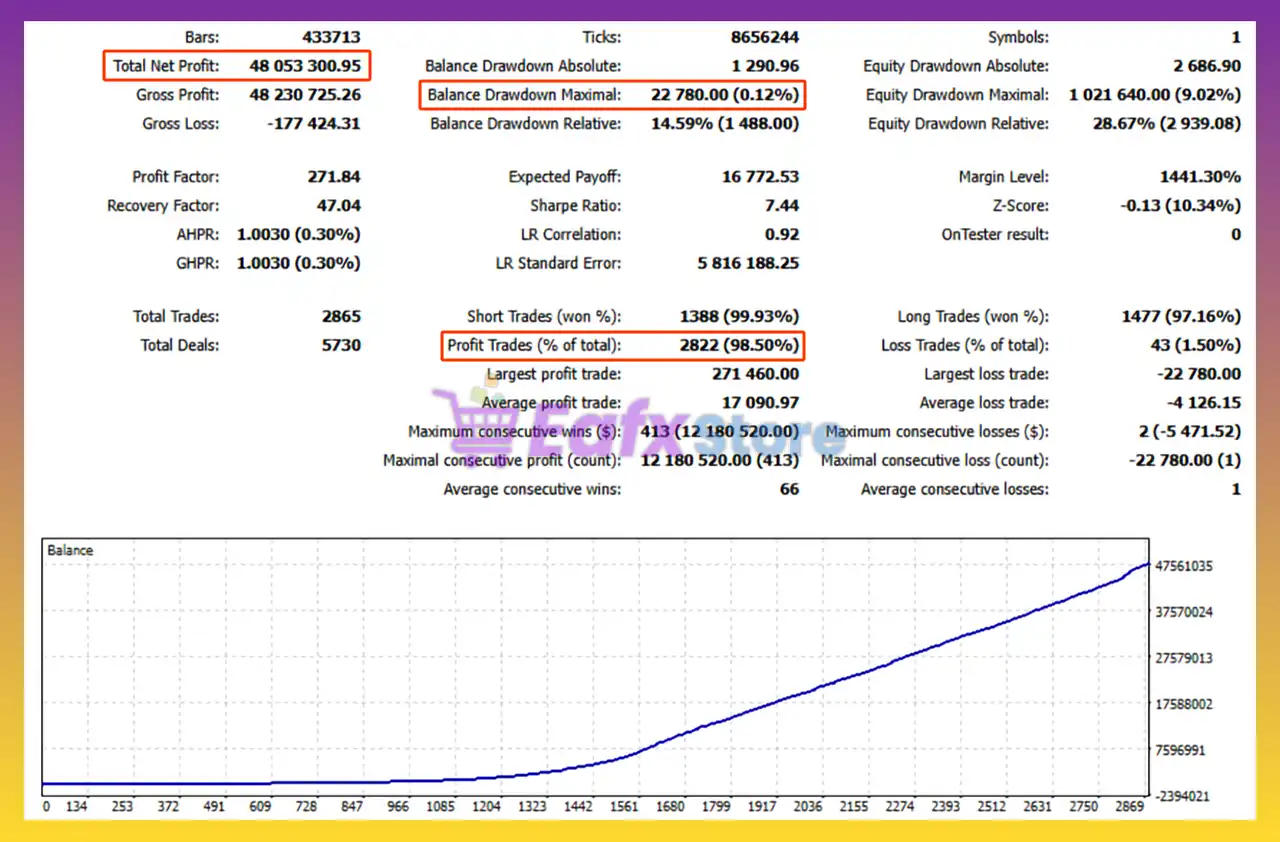 🔶 The Xauusd Breeze EA backtest trading results achieved impressive profit performance for 12 months on the XAUUSD pair.
