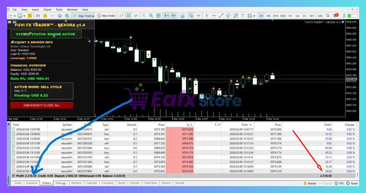 YUVI FX TRADER NEXORA MT5 is an AI-powered trading EA that analyzes market data, liquidity and volatility to execute trades automatically.